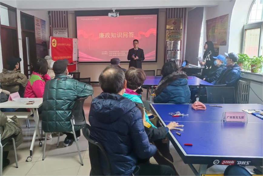 清风辞旧岁 廉洁迎新春 新春佳节即将到来 河西区将廉洁文化融入新春节日 开展系列活动 吹起廉洁新风 弘扬清风正气 营造喜庆祥和的节日氛围 桃园街道广顺园社区纪检监察工作联络站携手社区党委、社区居民文艺骨干团队,开展“弘扬廉洁新文化 打造文明新风尚”廉洁文化汇演活动,将京韵大鼓、民族舞蹈、诗词朗诵等文艺表演与宣传廉洁文化相结合,使大家在欣赏文化演出的同时提升廉洁意识,用自身实际行动管好家人,带好邻里,传承良好家风家训,为建设清廉社区夯实群众基础。 左右滑动查看更多 东海街道华江一委社区开展“浓情腊八 腊语廉粥”廉政文化活动,将廉洁小故事与腊八节的习俗、历史典故相融合;开展廉政文艺演出,通过集体合唱、朗诵表演等群众喜闻乐见的方式将廉洁文化融入文艺表演,充分发挥廉洁文化弘扬清风正气、传承良好家风的引领作用,让社区居民群众在休闲娱乐中感受廉洁文化的熏陶,教育引导社区居民增强廉洁意识,传承良好家风,在社区内营造崇廉尚洁的良好氛围。 左右滑动查看更多 太湖路街道雀榕园社区开展“廉洁文明进万家 和美家风助清廉”廉洁文化进社区文艺演出活动。社区纪检监察联络站工作人员结合社区党风廉政建设工作开展情况为居民上了一节生动的廉政党课,呼吁社区居民加强监督,配合抓好社区党风廉政建设工作。社区志愿者为大家带来毛主席诗词联读、《金沙江畔》等歌舞表演,将廉洁元素与艺术表演相融合,通过寓教于乐的方式持续推动廉洁文化进社区,营造积极向上、清正廉洁的浓厚氛围。 左右滑动查看更多 左右滑动查看更多 东海街道华江二委社区开展“喜迎新年春意闹 巧做腊梅倡清廉”活动,在社区志愿者的带领下,社区居民了解植物腊梅的生长习性,体会其坚毅、高洁的美好品格,并亲自体验制作腊梅枝条插花作品,将廉洁文化融入日常、浸润人心,引导社区居民增强廉洁修身、坚韧不拔的思想意识,营造风清气正倡廉洁的社区氛围。 左右滑动查看更多